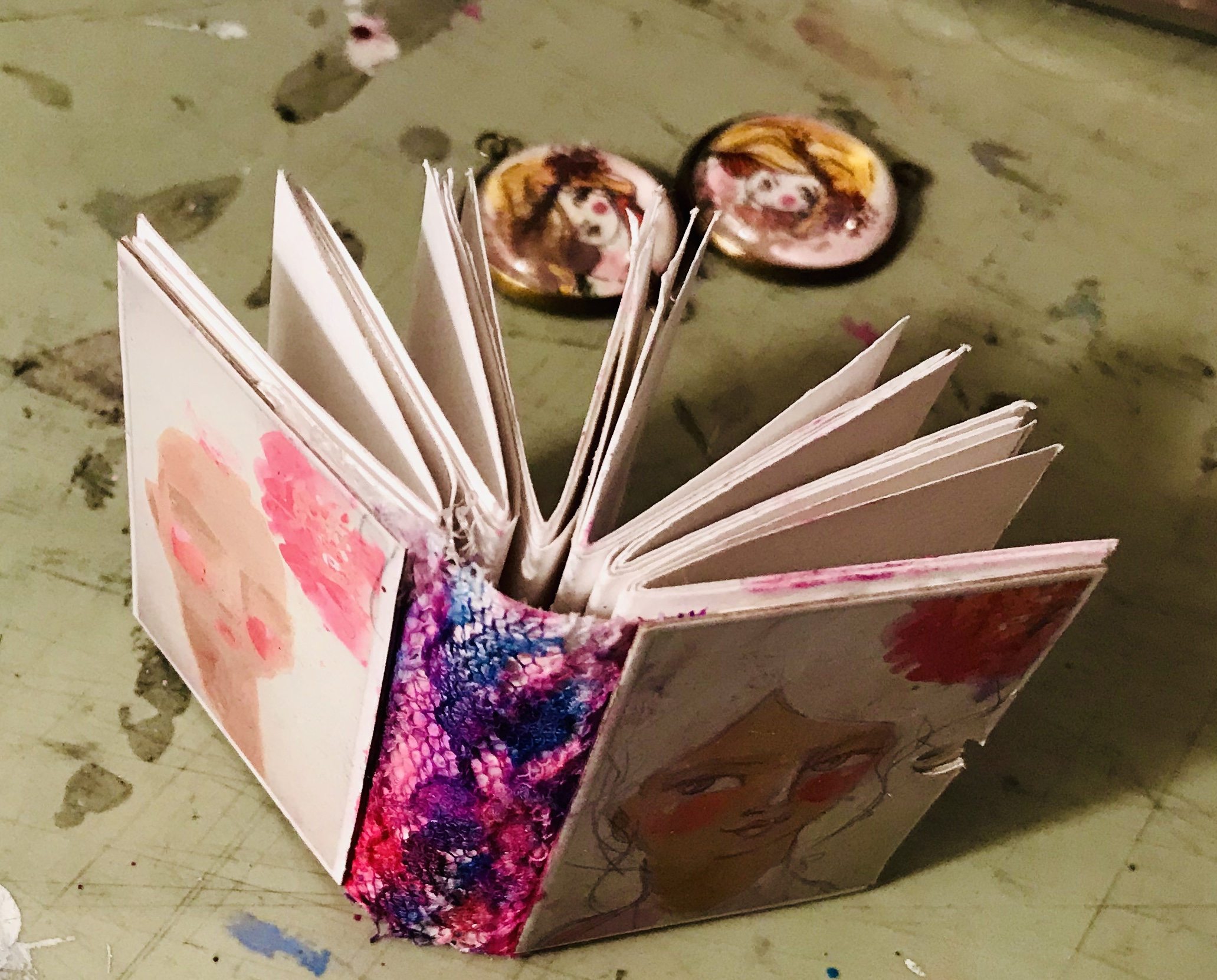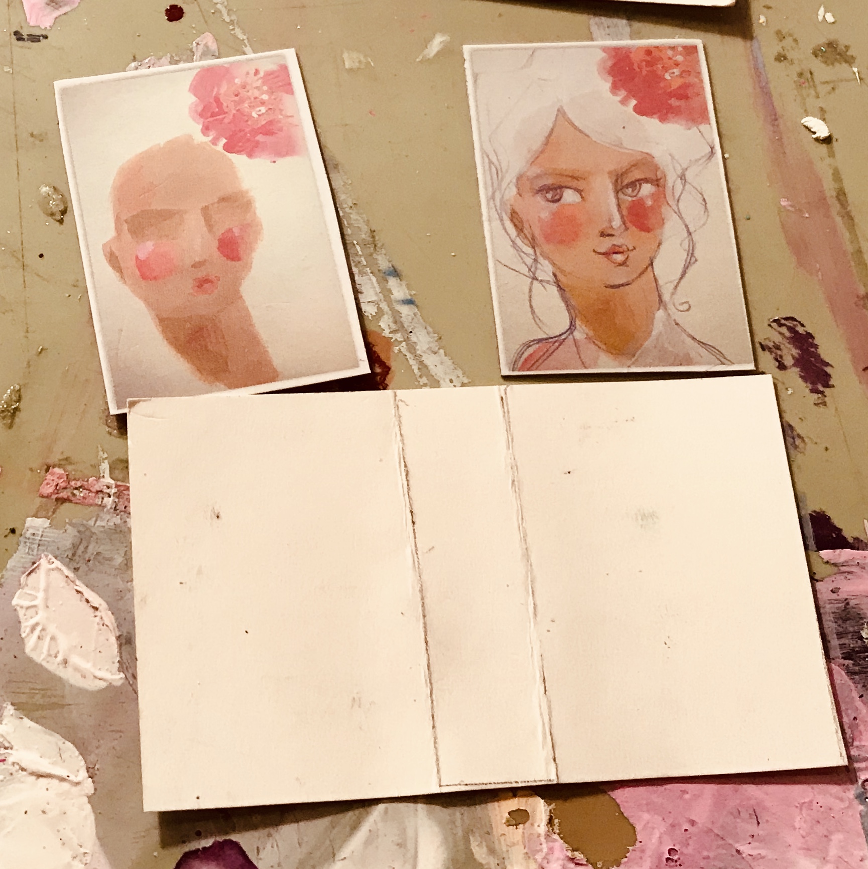 I cut two of these out to make a mini book. I love making handmade books, be it an art journal, Junk journal, or art book. These two faces made the perfect front and back cover.